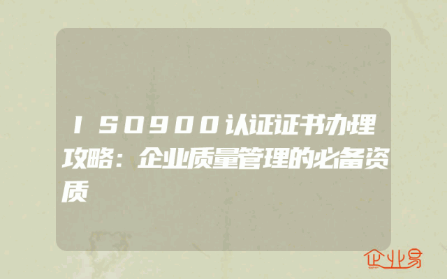 - ISO900认证证书办理攻略:企业质量管理的必备资质