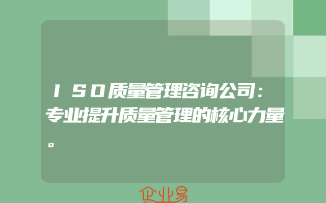 - ISO质量管理咨询公司:专业提升质量管理的核心力量。