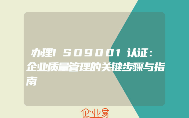 - 办理ISO9001认证:企业质量管理的关键步骤与指南