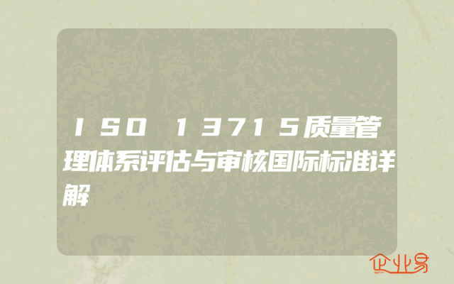 - ISO 13715质量管理体系评估与审核国际标准详解