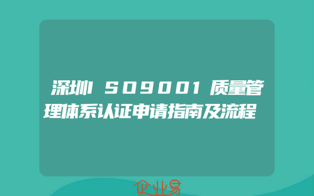 - 深圳ISO9001质量管理体系认证申请指南及流程