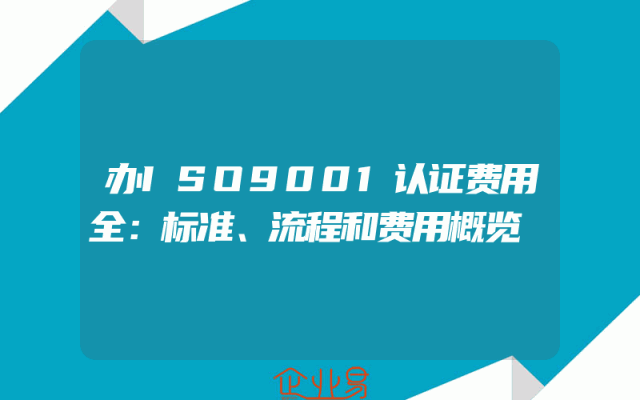 - 办ISO9001认证费用全:标准、流程和费用概览