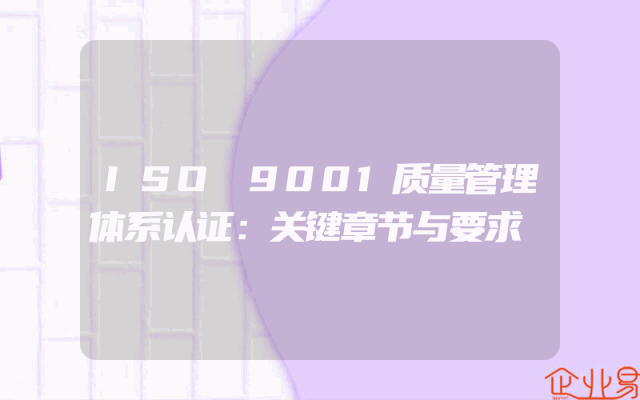 - ISO9001质量管理体系认证:关键章节解析与要求一、引言随着全球化竞争的日益激烈,企业越来越注重质量管理体系的建立和完善。ISO9001是国际标准化组织制定的一套质量管理体系标准,被广泛应用于全球各类组织,成为企业追求卓越、保证产品和服务