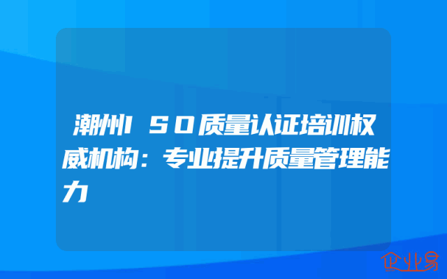 - 潮州ISO质量认证培训权威机构:专业提升质量管理能力