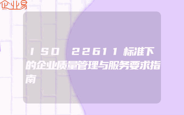 - ISO 22611标准下的企业质量管理与服务要求指南