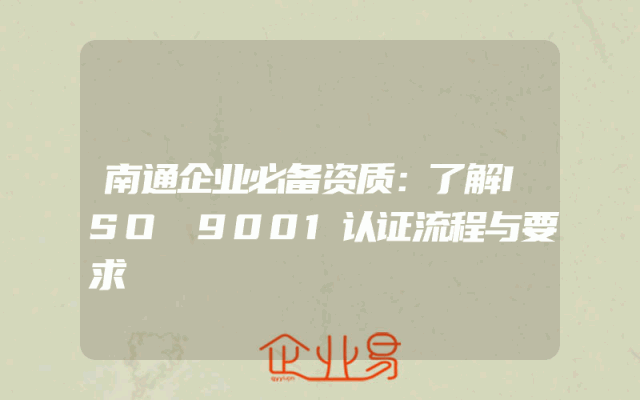 - 南通企业必备资质:了解ISO 9001认证流程与要求