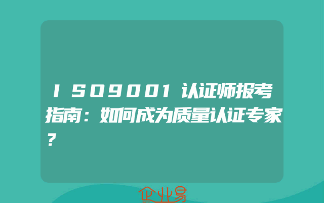 - ISO9001认证师报考指南:如何成为质量认证专家?