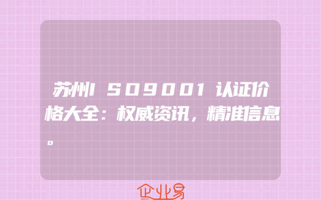 - 苏州ISO9001认证价格大全:权威资讯,精准信息。