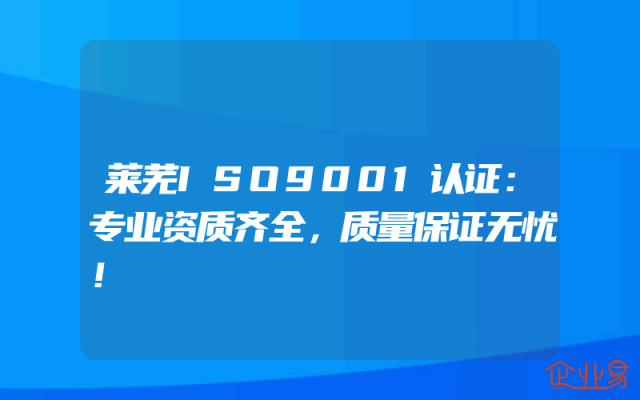 - 莱芜ISO9001认证:专业资质齐全,质量保证无忧!