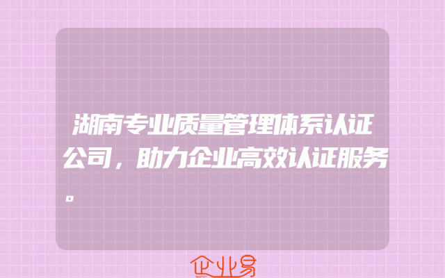 - 湖南专业质量管理体系认证公司,助力企业高效认证服务。