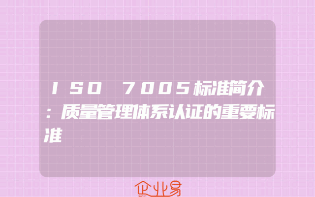 - ISO 7005标准简介:质量管理体系认证的重要标准