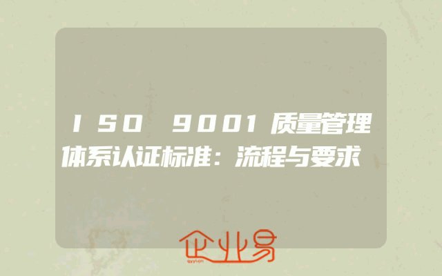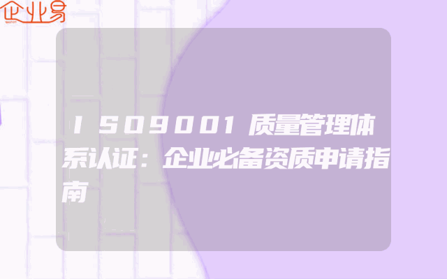 - ISO9001质量管理体系认证:企业必备资质申请指南