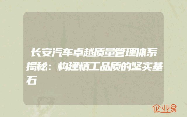 - 长安汽车卓越质量管理体系揭秘:构建精工品质的坚实基石引言在中国汽车产业的激烈竞争中,长安汽车以其卓越的质量管理体系独树一帜。该体系不仅是企业精工品质的保障,更是其稳健发展的坚实基石。本文旨在深入探讨长安汽车质量管理体系的奥秘,分析其