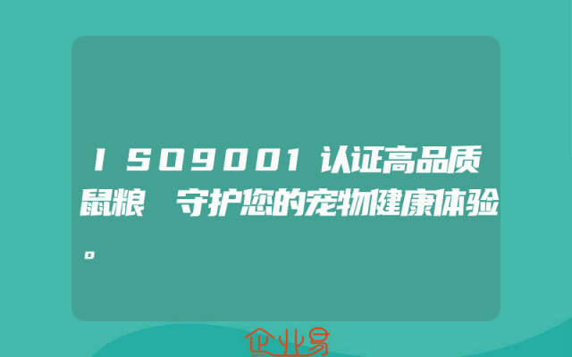 - ISO9001认证高品质鼠粮:守护您的宠物健康体验一、ISO9001认证与宠物食品的重要性在当今社会,随着人们生活品质的提高,宠物的健康和福祉越来越受到重视。ISO9001认证作为国际上广泛认可的质量管理体系标准,其应用于宠物食品领域,对于
