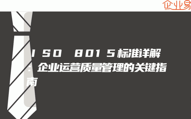 - ISO 8015标准详解:企业运营质量管理的关键指南