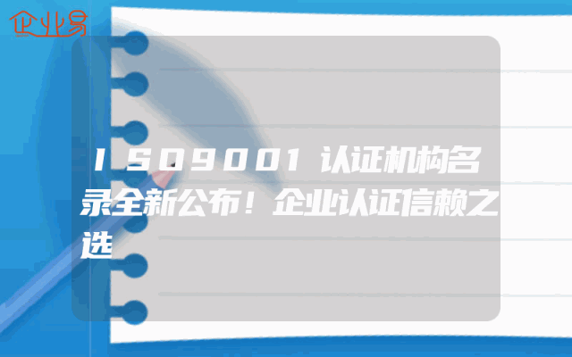 - ISO9001认证机构名录全新公布!企业认证信赖之选