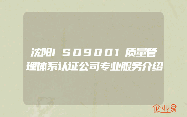 - 沈阳ISO9001质量管理体系认证公司专业服务介绍