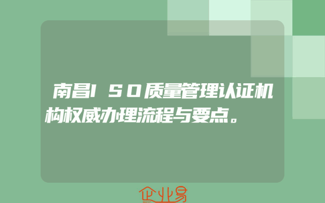 - 南昌ISO质量管理认证机构权威办理流程与要点。