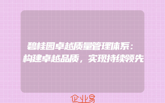 - 碧桂园卓越质量管理体系:构建卓越品质,实现持续领先