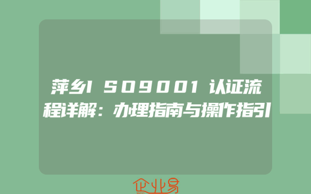 - 萍乡ISO9001认证流程详解:办理指南与操作指引