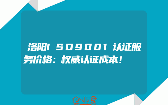 - 洛阳ISO9001认证服务价格:权威认证成本!