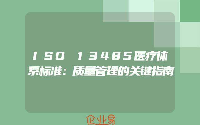 - ISO 13485医疗体系标准:质量管理的关键指南