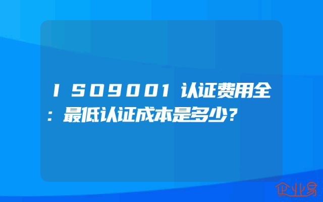 - ISO9001认证费用全解析:最低认证成本是多少?一、ISO9001认证概述ISO9001是国际上广泛采用的质量管理体系标准,对于提高企业运营效率、保证产品质量、提升公司形象有着重要的作用。进行ISO9001认证,需要支付一定的认证费用,这