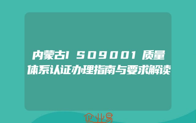 - 内蒙古ISO9001质量体系认证办理指南与要求解读