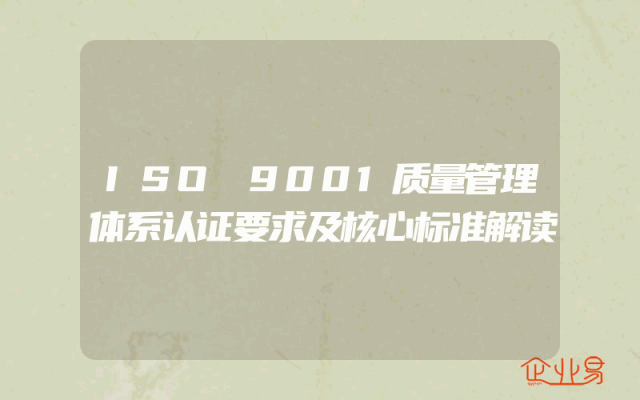 - ISO9001质量管理体系认证要求及核心标准解读一、ISO9001质量管理体系认证的重要性在当今竞争激烈的市场环境中,企业要想保持持续稳定的业务发展,必须重视质量管理体系的建设。ISO9001是国际标准化组织制定的质量管理体系标准,被广泛应
