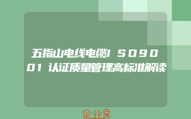 - 五指山电线电缆ISO9001认证质量管理高标准解读
