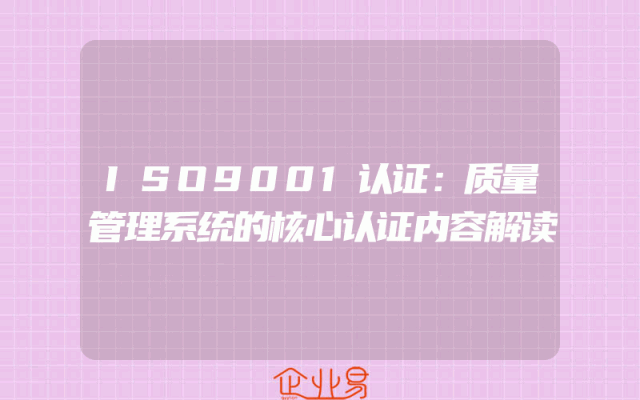 - ISO9001认证:质量管理系统的核心认证内容解读一、引言随着市场竞争的日益激烈,企业对自身质量管理的要求也越来越高。ISO9001认证作为全球广泛接受的质量管理体系标准,成为了众多企业追求的重要目标。那么,ISO9001认证的核心内容是什