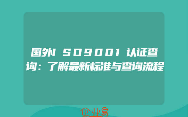 - 国外ISO9001认证查询:了解最新标准与查询流程