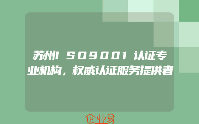 - 苏州ISO9001认证专业机构,权威认证服务提供者