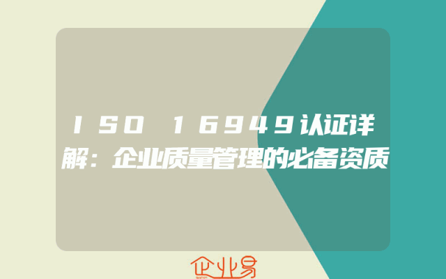 - ISO 16949认证详解:企业质量管理的必备资质