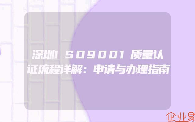 - 深圳ISO9001质量认证流程详解:申请与办理指南