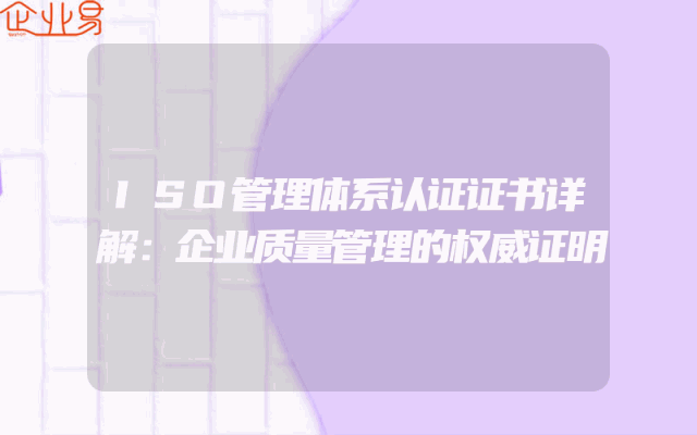 - ISO管理体系认证证书详解:企业质量管理的权威证明