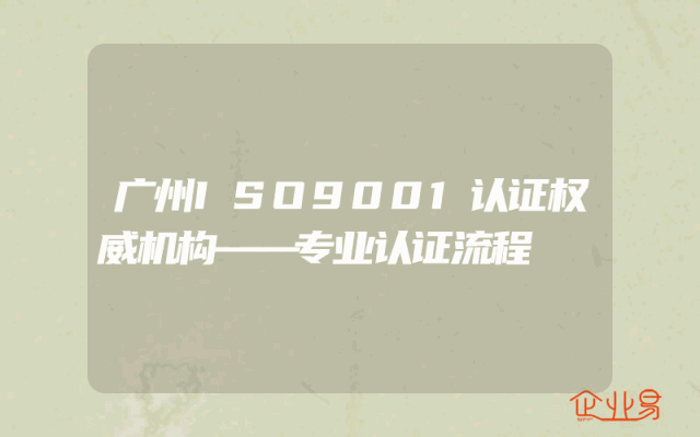 - 广州ISO9001认证权威机构——专业认证流程