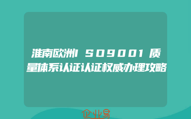 - 淮南欧洲ISO9001质量体系认证认证权威办理攻略