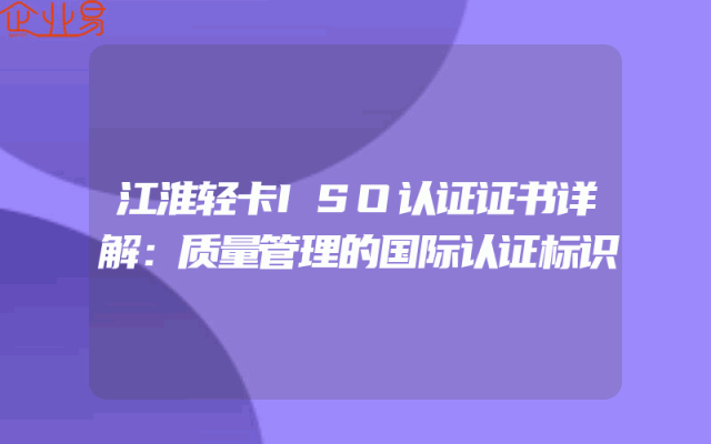 - 江淮轻卡ISO认证证书详解:质量管理的国际认证标识