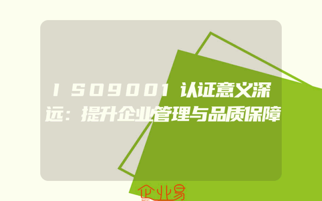 - ISO9001认证意义深远:提升企业管理与品质保障