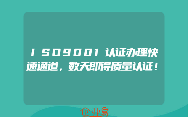 - ISO9001认证办理快速通道,数天即得质量认证!