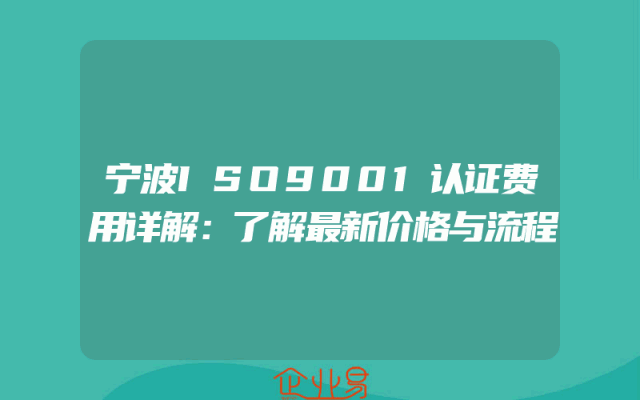 - 宁波ISO9001认证费用详解:了解最新价格与流程
