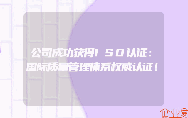 - 公司成功获得ISO认证:国际质量管理体系权威认证!