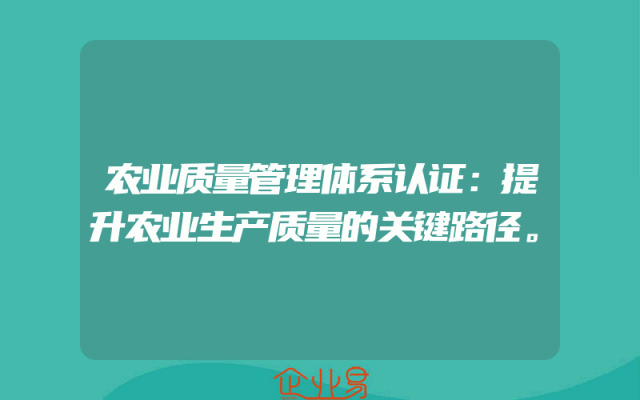 - 农业质量管理体系认证:提升农业生产质量的关键路径。