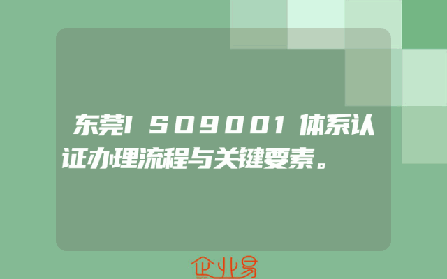 - 东莞ISO9001体系认证办理流程与关键要素。