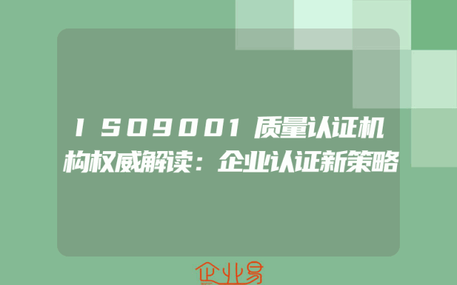 - ISO9001质量认证机构权威解读:企业认证新策略