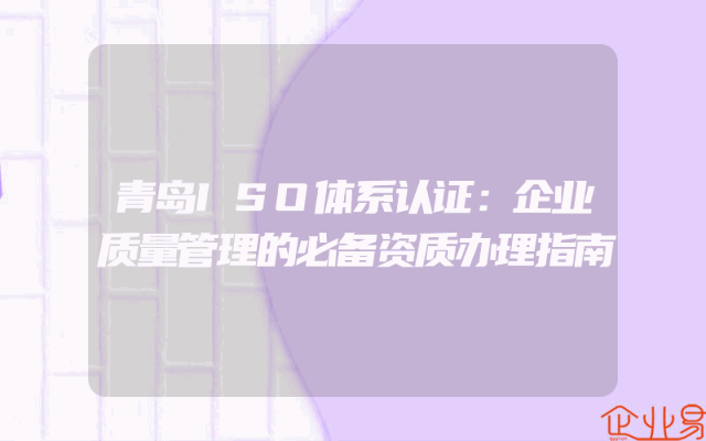 - 青岛ISO体系认证:企业质量管理的必备资质办理指南