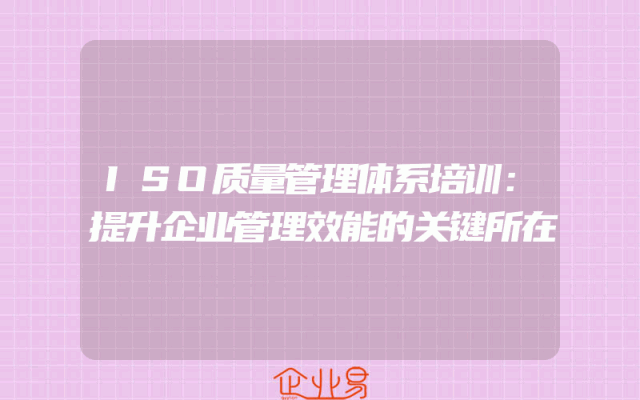 - ISO质量管理体系培训:提升企业管理效能的关键所在