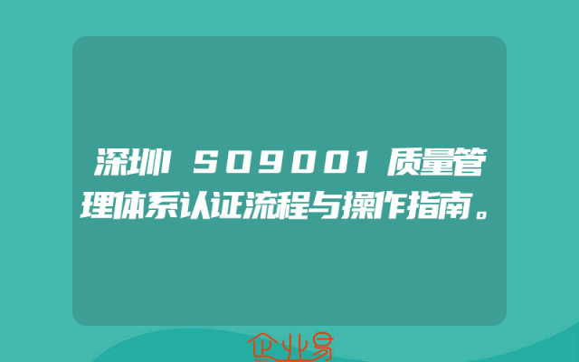 - 深圳ISO9001质量管理体系认证流程与操作指南。