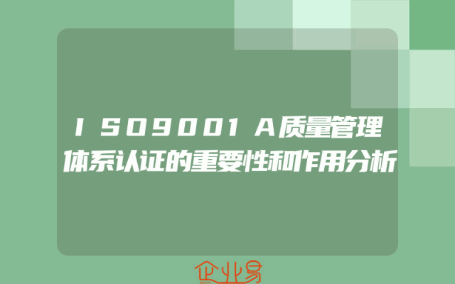 - ISO9001A质量管理体系认证的重要性和作用分析
